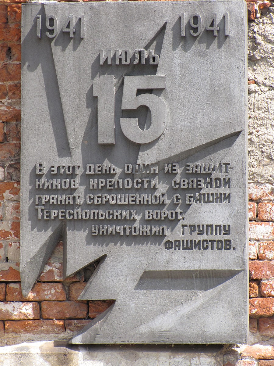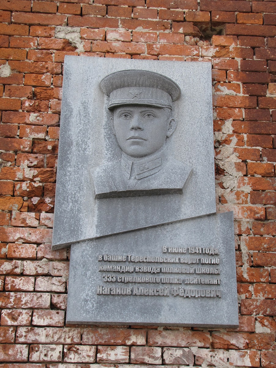 „У јуну 1941. године у кули Тересполске капије погинуо је командир вода пуковске школе 333. стрељачког пука, поручник Наганов Алексеј Фјодорович“
