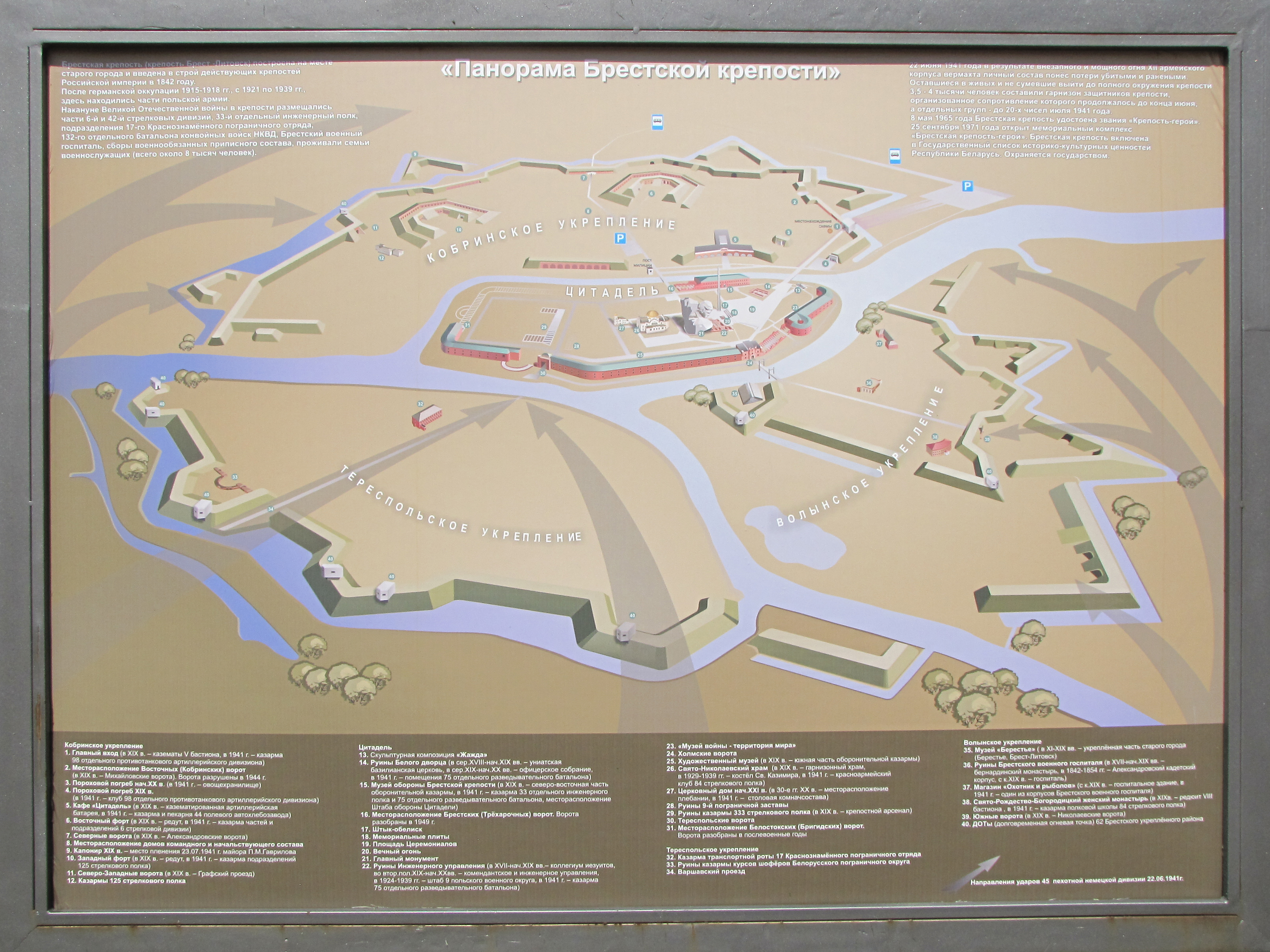 Прелазим мост преко реке Мухавец и са Кобринског утврђења улазим у централни део тврђаве, такозвану Цитаделу, која представља природно острво по чијем је периметру изграђена двоспратна одбрамбена касарна у дужини од 1.8 km.