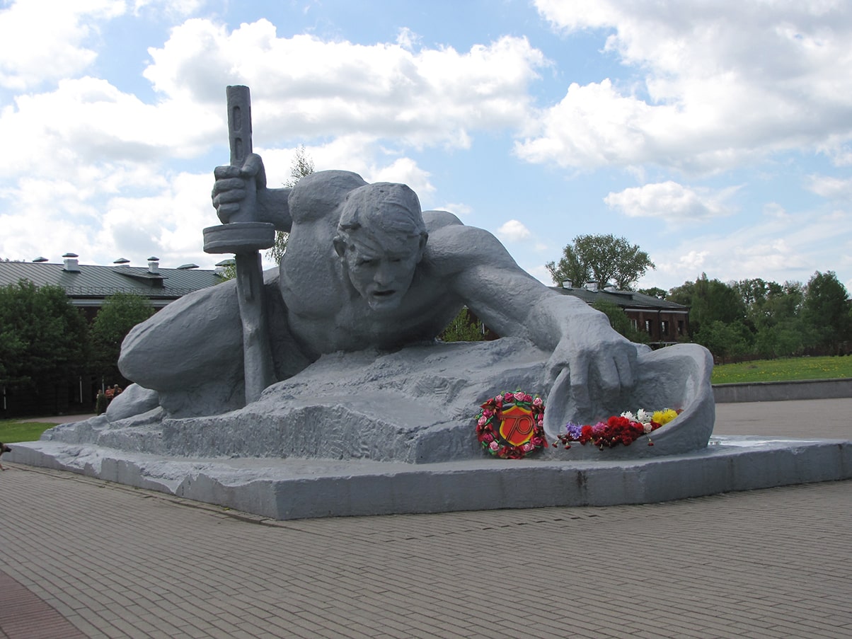 Шетњу настављам према споменику „Храброст“ који је по свом изгледу и величини најупечатљивији споменик у целој тврђави. Висине је око 30, а ширине преко 50 метара. Представља војника и заставу. Када га човек и даљине гледа изгледа као да је исклесан у некој стени, а у ствари се састоји од 200 бетонских делова који су причвршћени за металну конструкцију. CNN је овај споменик ставио на листу најружнијих споменика у свету што је изазвало буру негодовања у Русији и Белорусији, па је поменута медијска кућа морала да упути извињење.