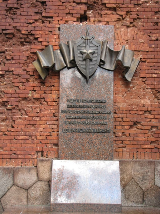 Споменик припадницима НКВД-а на јужној страни одбрамбене касарне