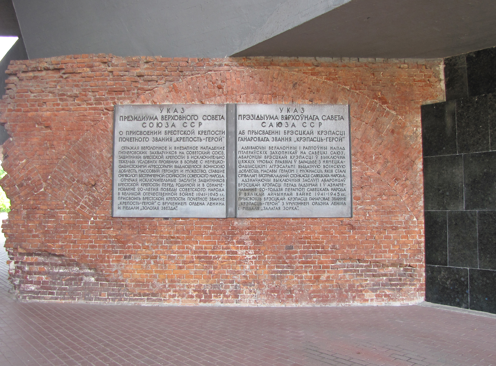 На једном од зидова каземата који се налазе испод бетонског блока налази се табла са указом Президијума Врховног Совјета СССР-а којим се Брестовска тврђава проглашава за тврђаву-херој.