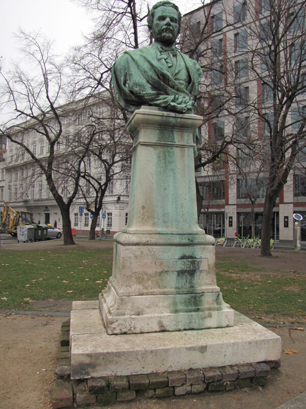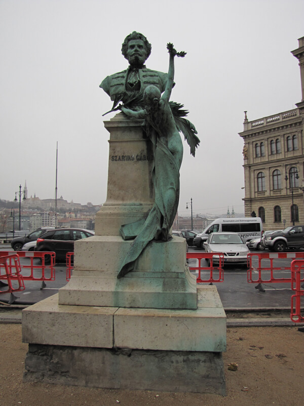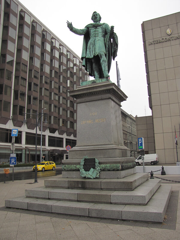 Од Сечењијеог трг кренух према шеталишту крај Дунава. Успут накратко застадох на Етвешовом тргу, на коме се налази споменику барону Јожефу Етвешу, познатом мађарском писцу и државнику.