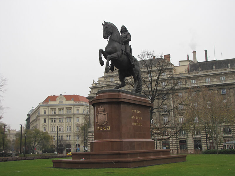 Први од њих је споменик Ференцу II Ракоцију кога Мађари сматрају својим националним херојем, јер је био вођа устанка против Хабсбурговаца. Налази се испред зграде парламента.