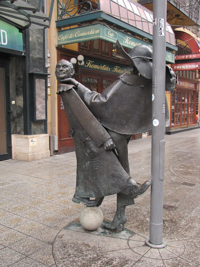 Недалеко од статуе Имре Калмана налази се необична бронзана статуа познатог мађарског комичара Гезе Хофија. Хофијеву главу у левој руци држи жена, огрнута у мантил, са лобањом преко које се налази шешир.