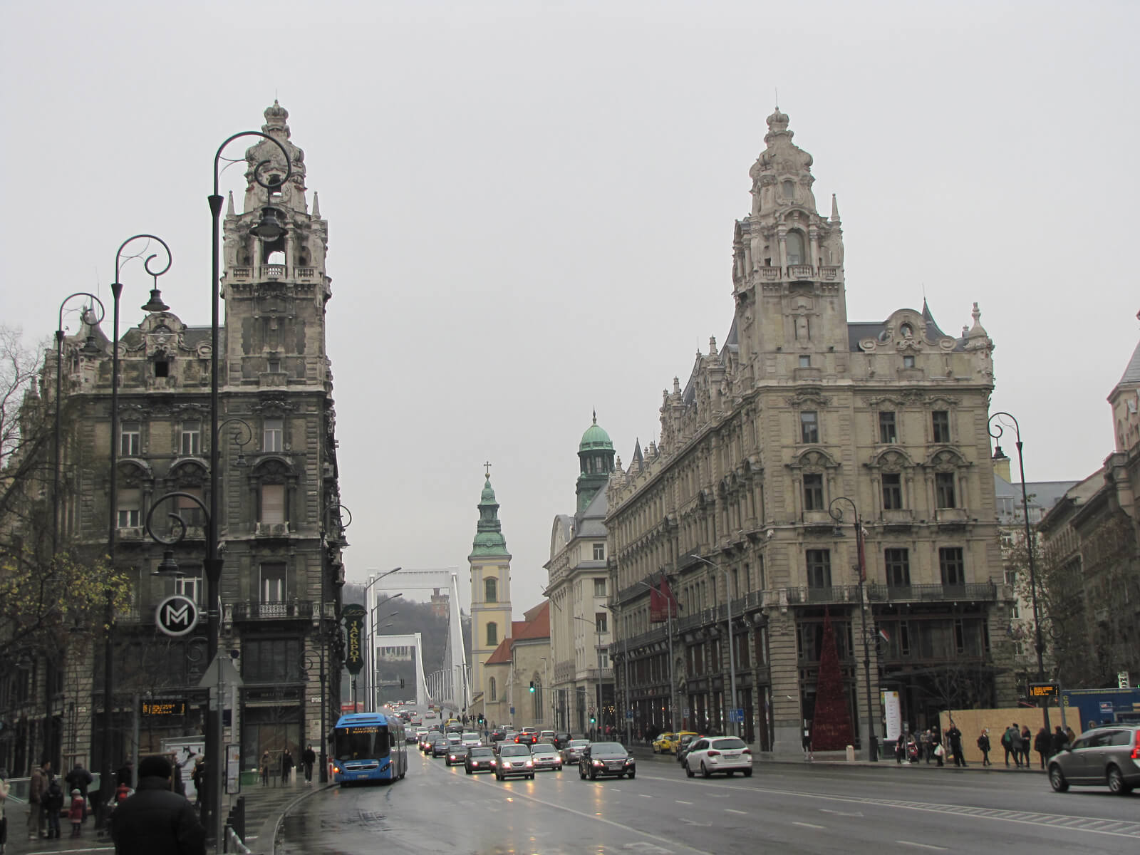 Улицом Ваци стигох до улице Лајоша Кошута (мађ. Kossuth Lajos utca) из које се пружа поглед на Елизабетин мост.