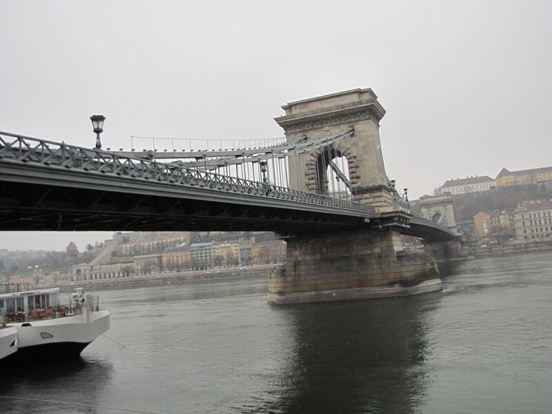 На Сечењијев трг „излази“ Сечењијев ланчани мост. Док сам се мувао око трга и моста време се погоршало – почео је да дува јак ветар и провејава снег. Међутим, то није сметало групи младих кинеских туриста који су се сликали око моста. По осмесима на њиховим лицима изгледало је да се проводе као никада у животу. То ми је улило додатну енергију да наставим даље, јер сам више од четири сата шетао градом, па је умор почео полако да ме савлађује.