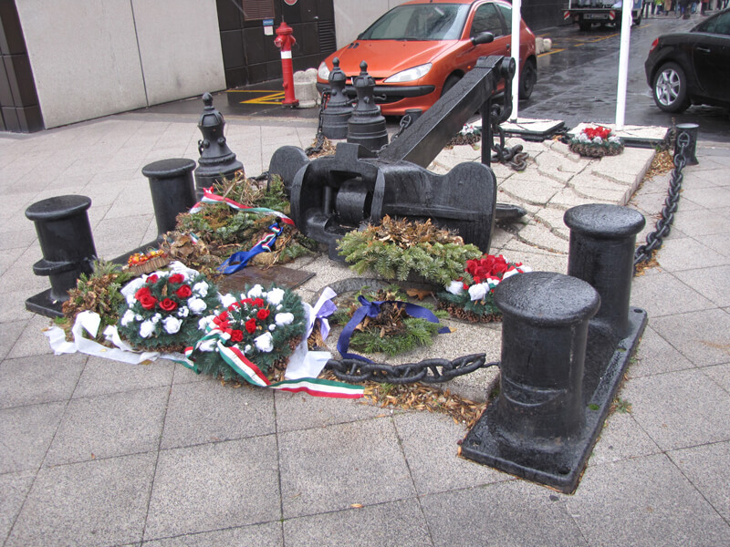 Стотинак метара даље је споменик мађарским морнарима који су изгубили животе на мору. Подигло га је Мађарско удружење помораца. Постојање таквог удружења у земљи која нема излаз ни на једно море за мене остаје мистерија.