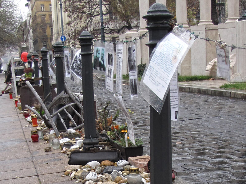 Врло брзо испред споменика је „никао“ паралелни споменик кога чине личне ствари, фотографије и документи жртава мађарског нацизма (пре свега Јевреја) у периоду од 1941. до 1945.