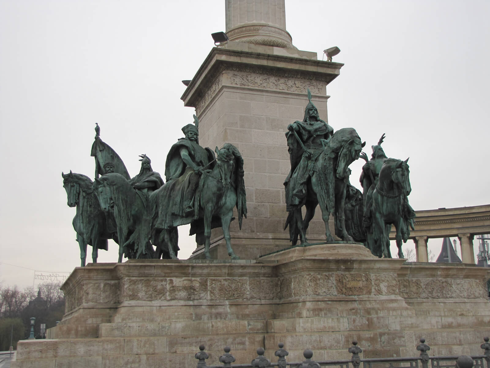 У подножју стуба налазе се скулптуре које представљају седам вођа мађарских племена на челу са кнезом Арпадом, родоначелником владајуће мађарске династије.
