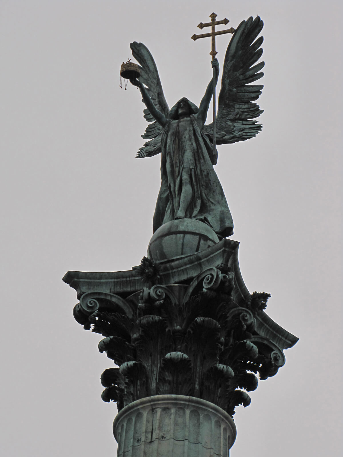 Централни део споменика чини коринтски стуб висине 36 m на коме се налази статуа архангела Гаврила који у десној руци држи свету круну, а у левој двоструки крст. Висина статуе је 5 m. Према легенди управо је архангел Гаврило заповедио Светом Иштвану да преобрати Мађаре у хришћанство.