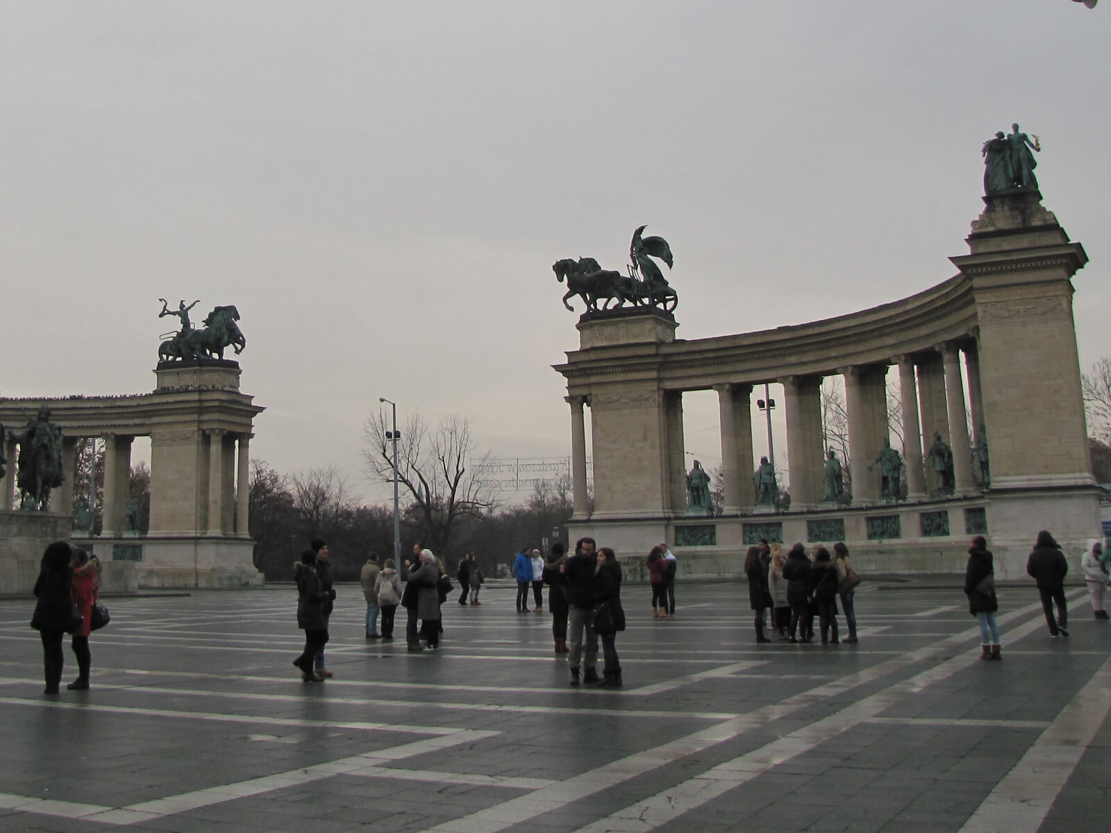 Ранац сам, као и обично, оставио у гардероби железничке станице. Пошто је времена било напретек, од железничке станице „Келети“ кренух лагано улицом Thököly út. према Тргу хероја (мађ.Hősök tere). До трга има нешто више од 2 километра, али након вишечасовног седења у возу лагана шетња може само да прија. Временске прилике ми нису ишле на руку, било је хладно и тмурно, али оно што је најбитније, кише није било.