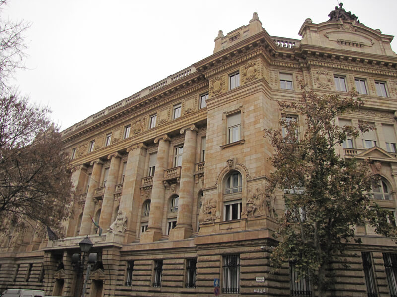 Од поменуте станице стигох до Трга слободе (мађ.Szabadság tér) на коме се налази неколико занимљивих споменика и објеката. Један од њих је и зграда Мађарске народне банке. Саграђена је 1905. по пројекту архитекте Игнаца Алпара који је можда најпознатији по томе што је пројектовао замак Вајдахуњад у Градском парку.