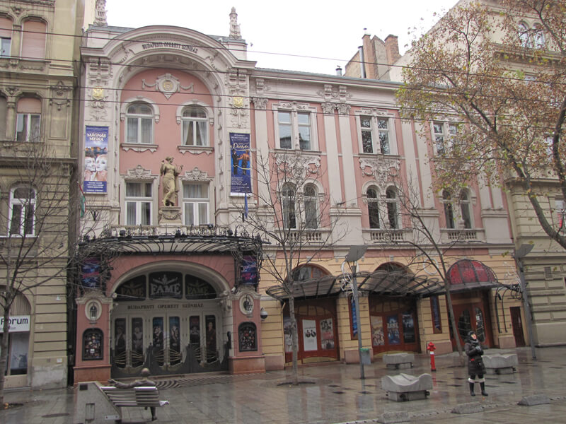 Наставих даље шетњу Андрашијевим булеваром. Затим из булевара скренух у „Nagymező u.“ у којој се испред зграде оперете налази бронзана скулптура Имре Калмана.