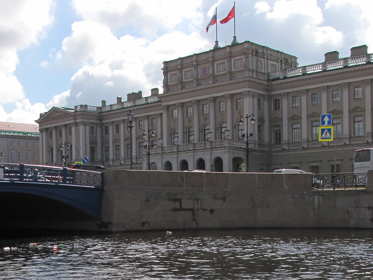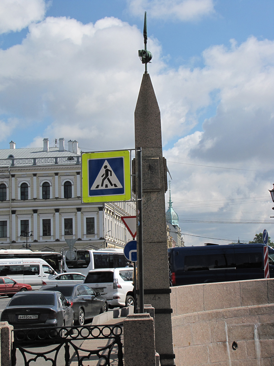 Због места на коме је подигнут Санкт Петербург су кроз историју пратиле честе поплаве. У близини Плавог моста, на кеју реке Мојке, 1971. постављен је показивач водостаја у облику обелиска. На њему су означени нивои реке за време највећих поплава које су погодиле град: 1824., 1903., 1924., 1955. и 1967. године.