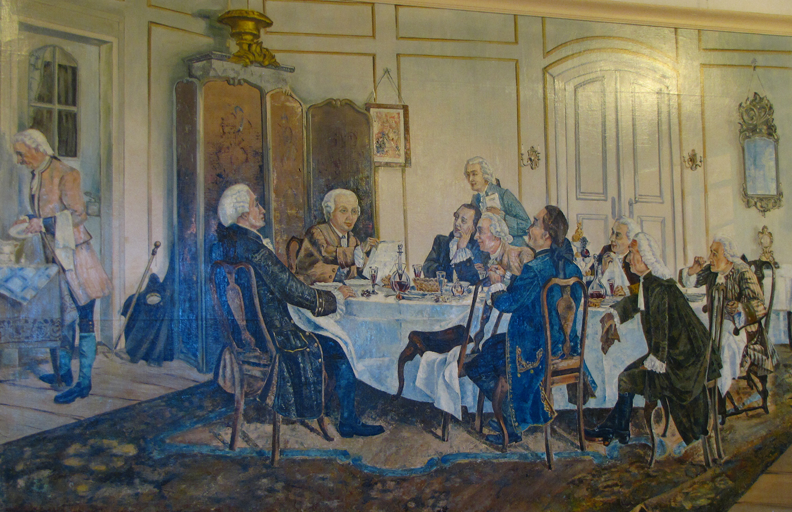 Прекопута Шефнера, а поред Хипела је још један Кантов ученик – бискуп протестантске цркве Лудвиг Ернест Боровски, аутор једне од Кантових биографија. На супротном крају стола од Канта седи његов колега са универзитета, хемичар Карл Готфрид Хаген. Он је био један од сталних Кантових гостију и разговори са њим за Канта су представљали велико задовољство. Хаген је поседовао велико знање из природних наука, нарочито хемије и биологије које су биле предмет Кантовог интересовања.