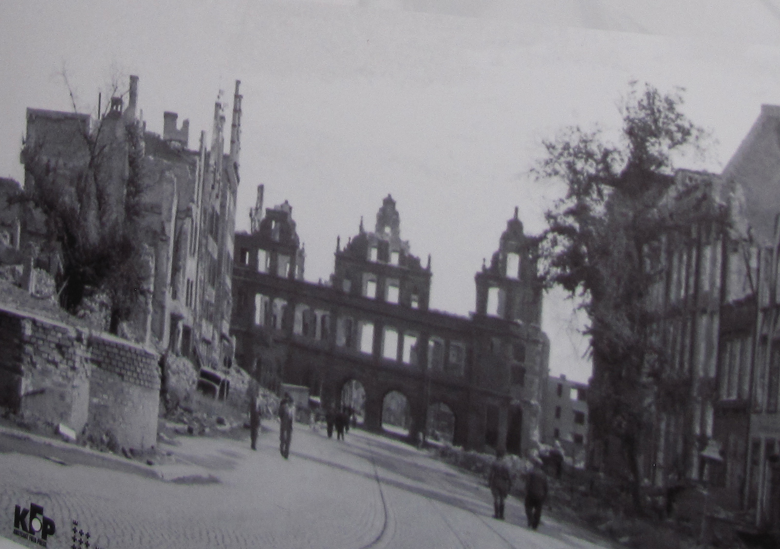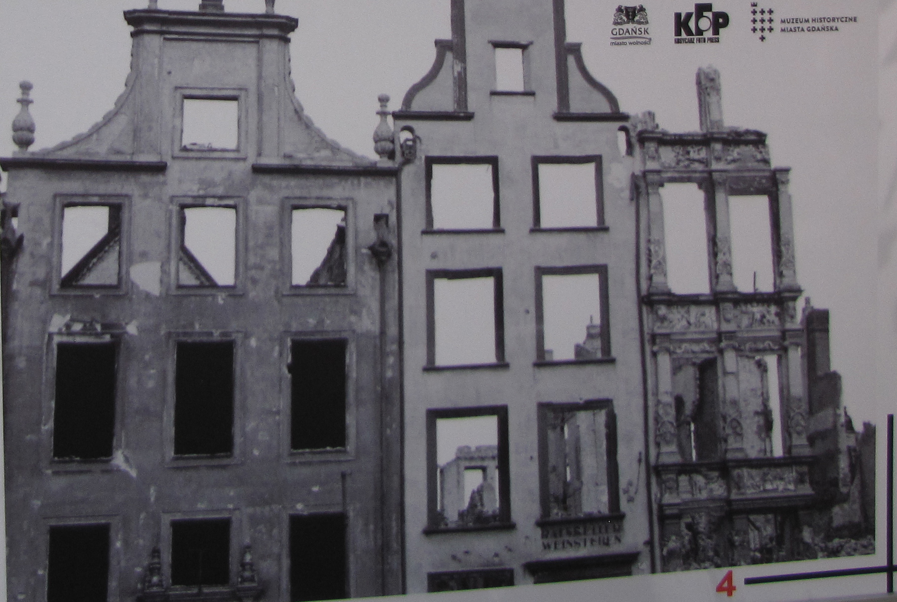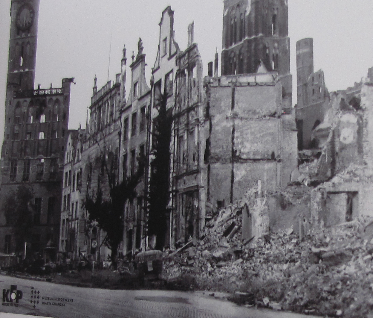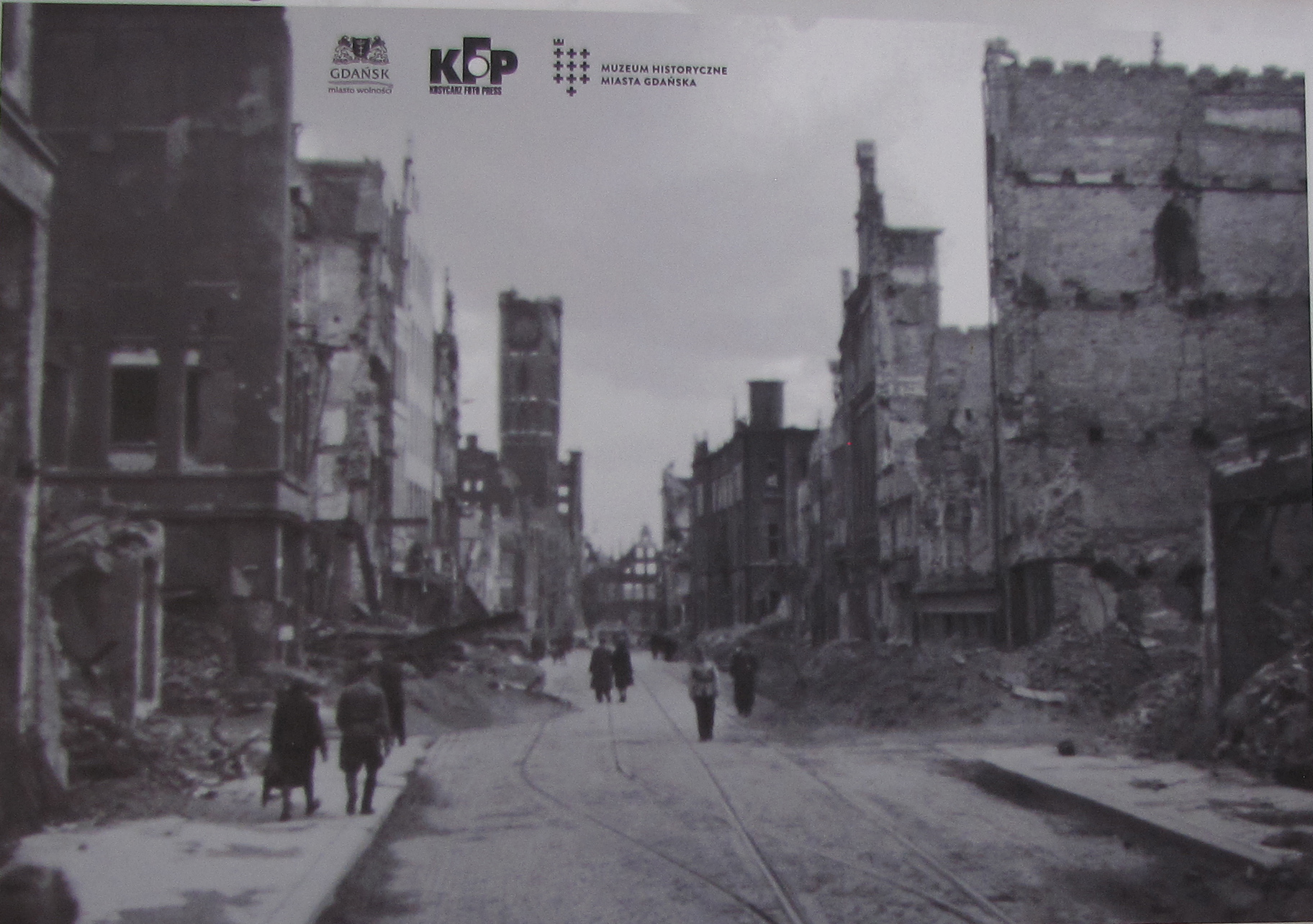 Због свог стратешког положаја око Гдањска су се у прошлости ломила многа копља и опседале су га разне војске. Највећа разарања несумњиво је претрпео пред крај Другог светског рата, када су га бомбардовали авиони западних савезника, а совјетска артиљерија тукла са земље. На тај трагичан период подсећа неколико фотографија, постављених на паноима на „Дугом тргу“ који су били део изложбе Историјског музеја Гдањска.